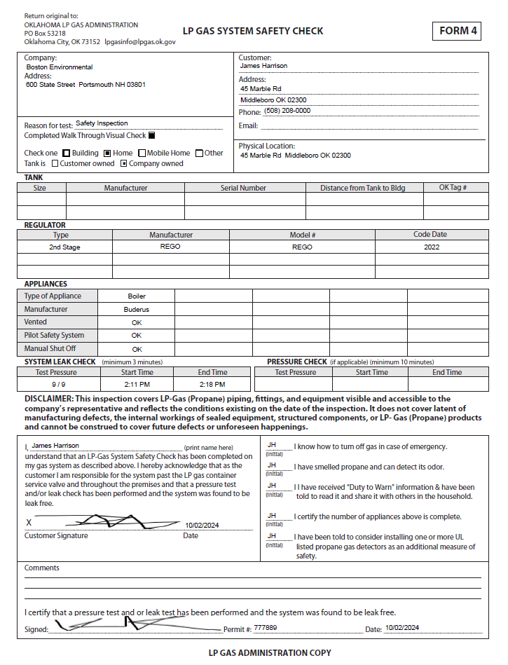 7. Possess Fire & propane safety documentation (if using open flame or propane appliances)
