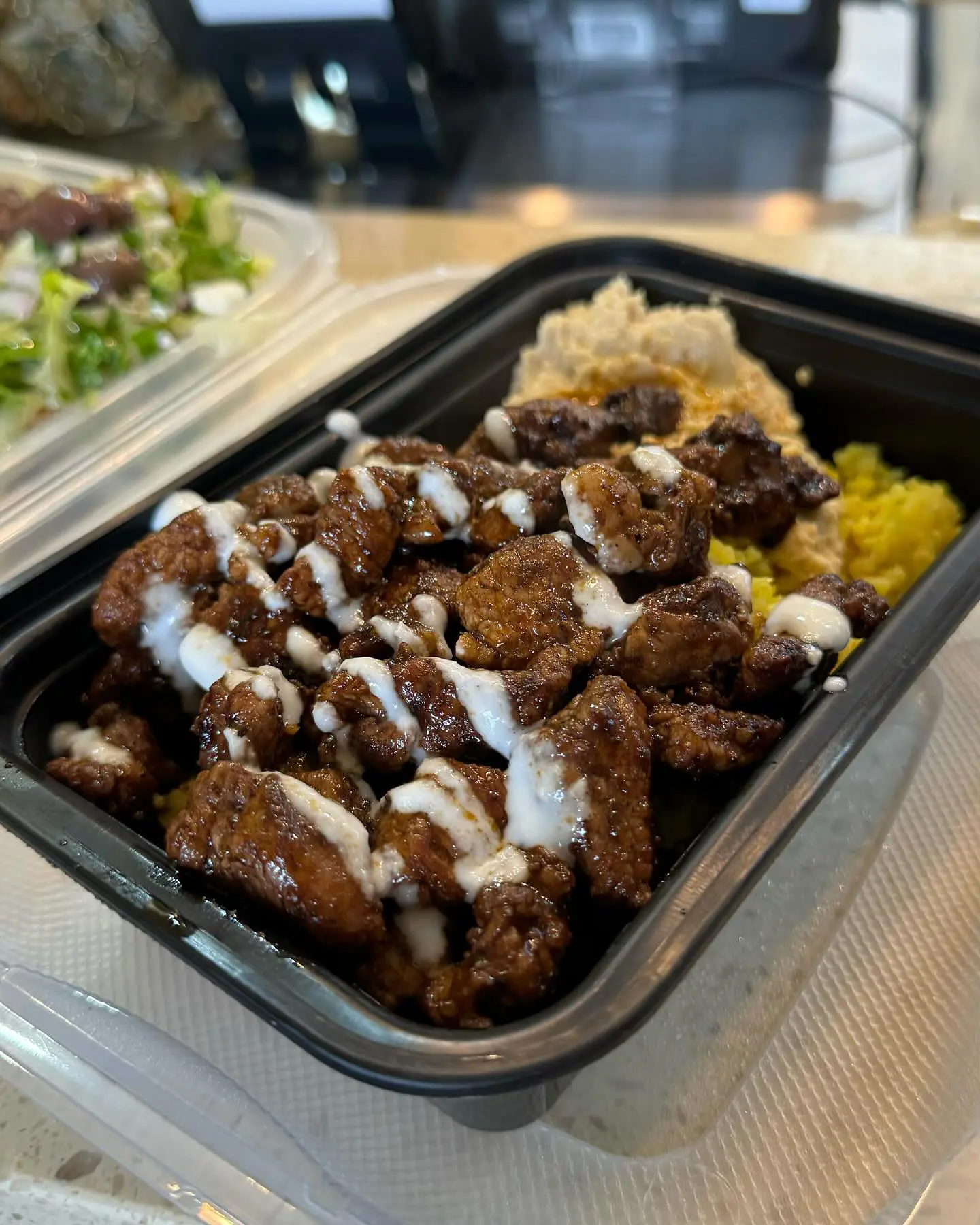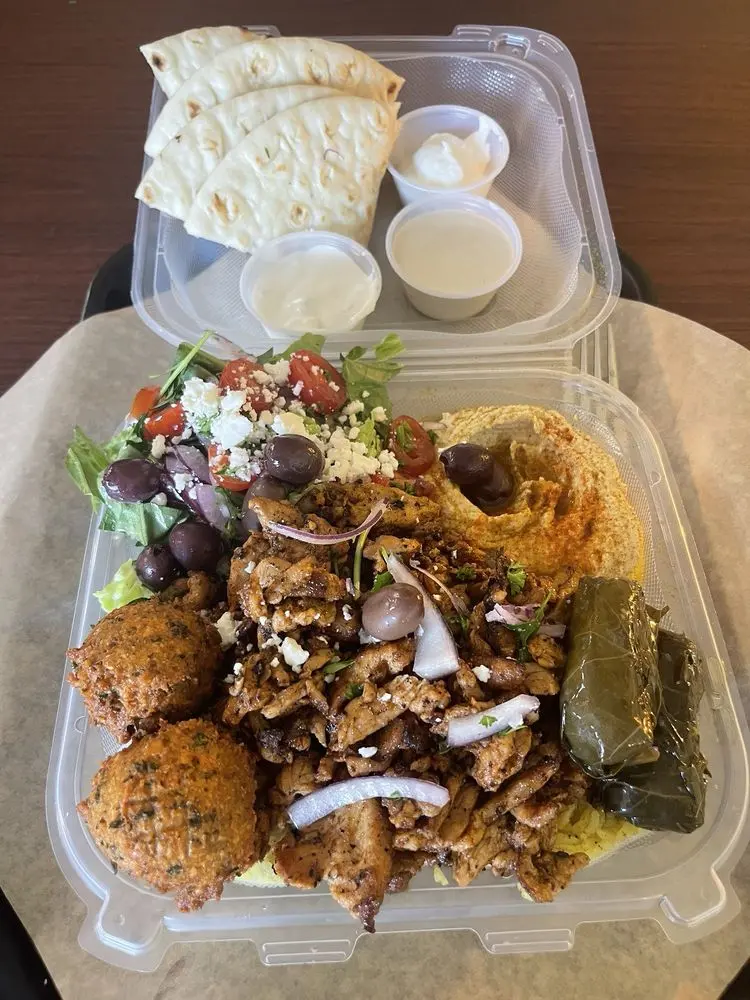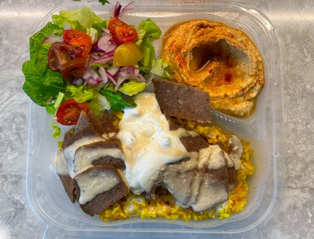 MUST TRY: Grilled Gyro Salad – A fresh, hearty mix of romaine, seasonal veggies, parsley, lemon, olive oil, and tahini, crowned with juicy slices of either chicken or lamb gyro. It’s light, flavorful, and endlessly satisfying food truck catering experience.