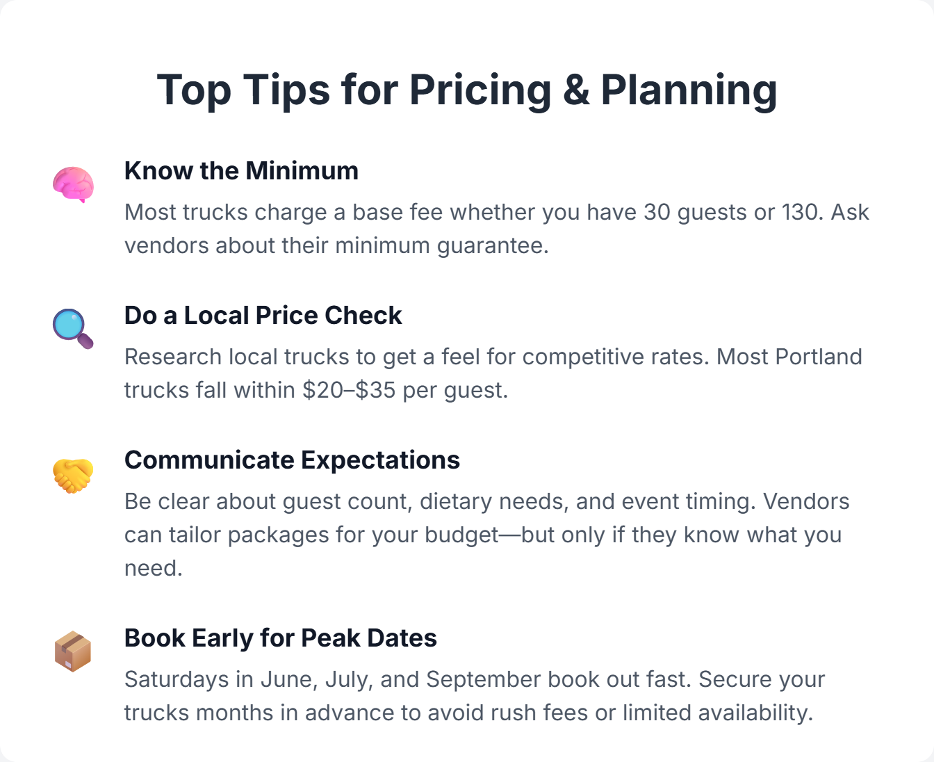 Whether you’re planning a wedding in wine country, a birthday bash at a park, or a corporate gathering downtown, Portland has no shortage of mobile vendors ready to feed your crowd with creativity, quality, and that signature Pacific Northwest flair. But let’s be real, before you bring in the food truck brigade or book that farm-to-table feast, you need to understand the cost.