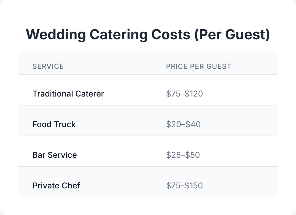 Many food trucks offer wedding packages with apps, mains, and late-night snacks. Book early (6+ months out), especially during the summer wedding season.