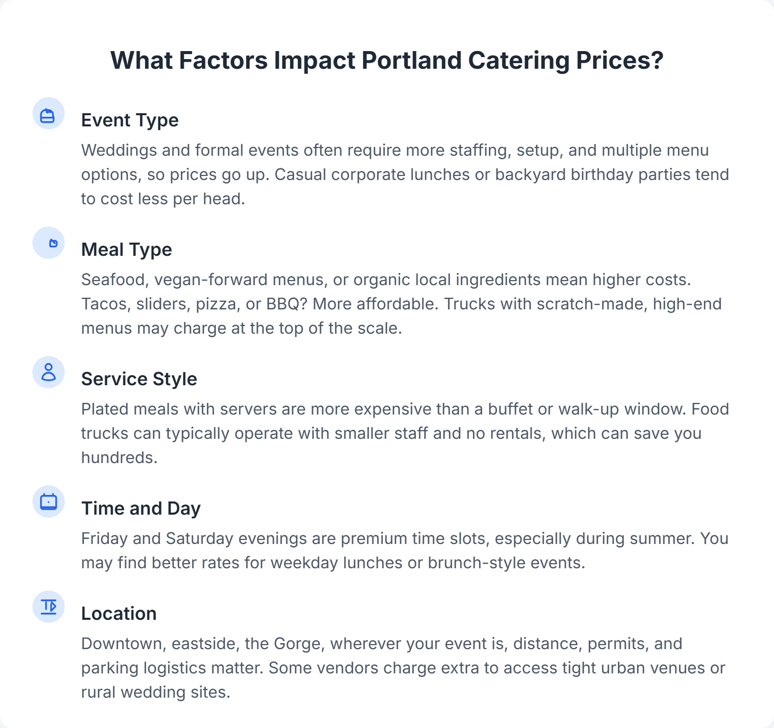 Factors that Impact Portland Catering Prices