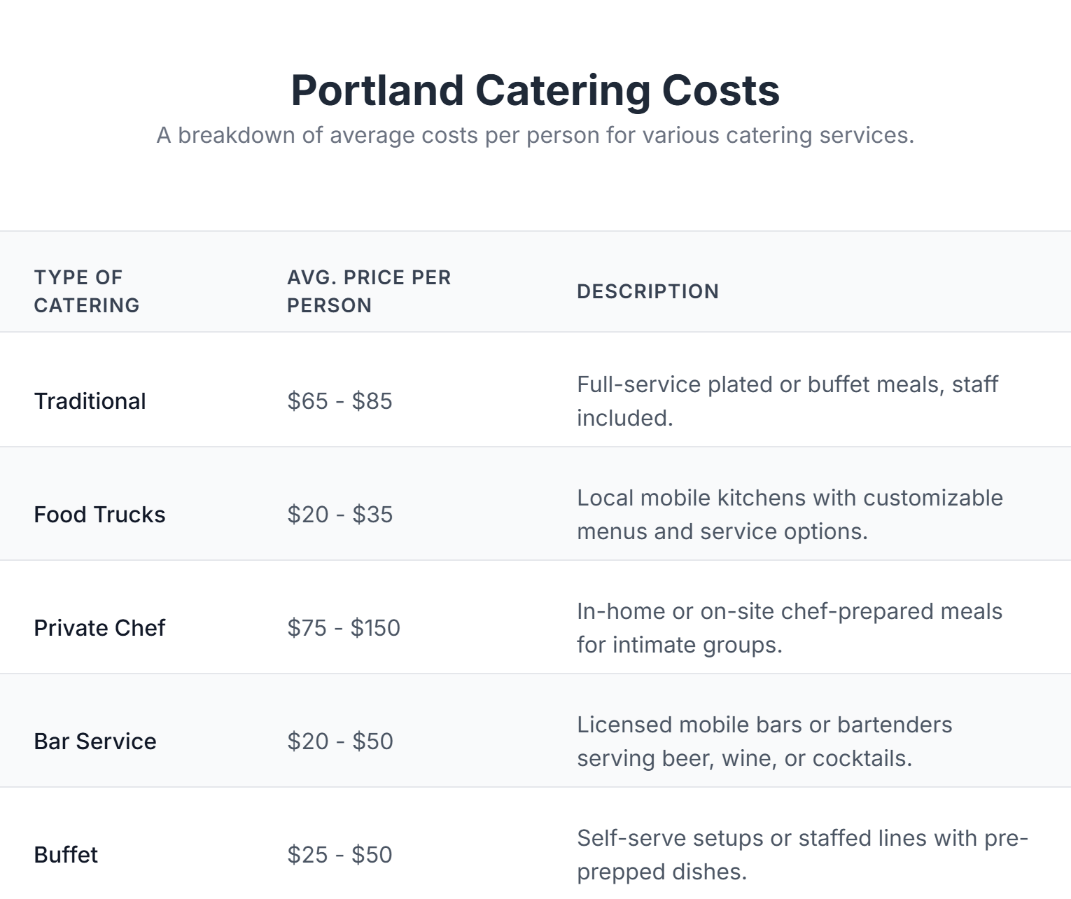 2025 Portland Catering Prices: What to Expect